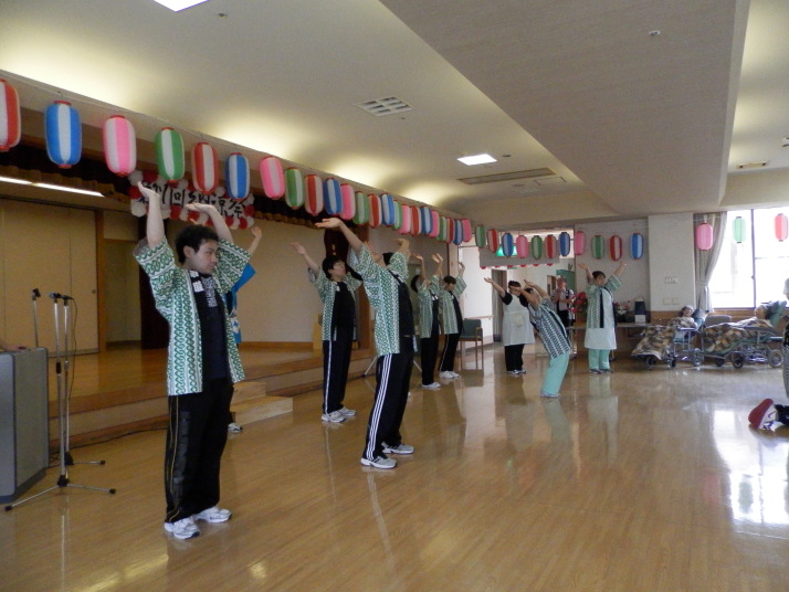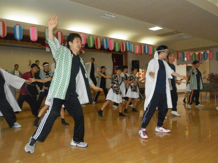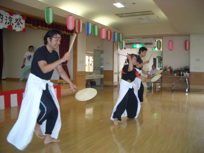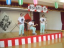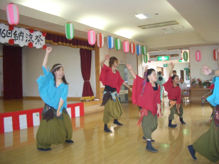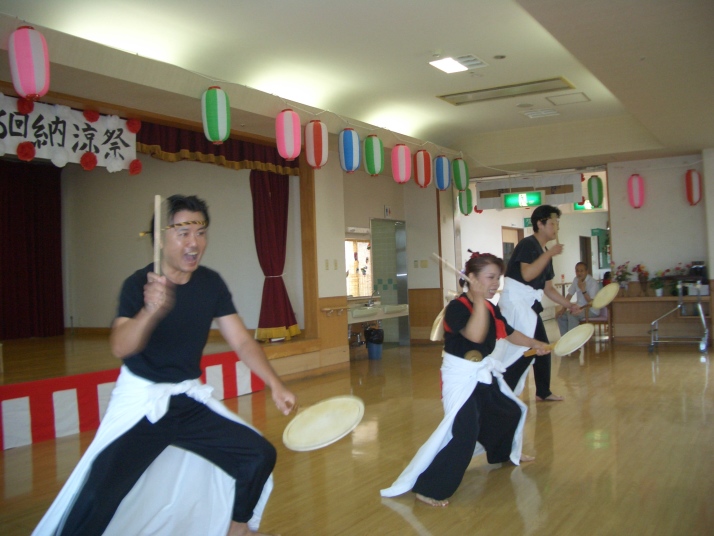 毎年恒例の納涼祭(左上からRyuki'04演舞、三線演奏、団扇太鼓)