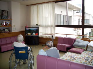 - 入所者の居宅で生活への復帰を念願において、寝たまま入浴できる特殊浴槽やリハビリテーション設備等で介護職員等が行き届いた介護と支援をいたします。